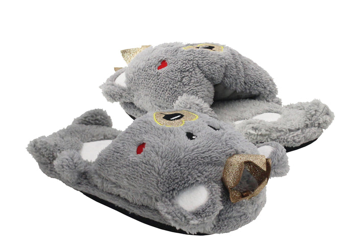 Womens Ladies Lightweight Padded Warm Slip On Teddy Bear Novelty Grey Winter Slippers