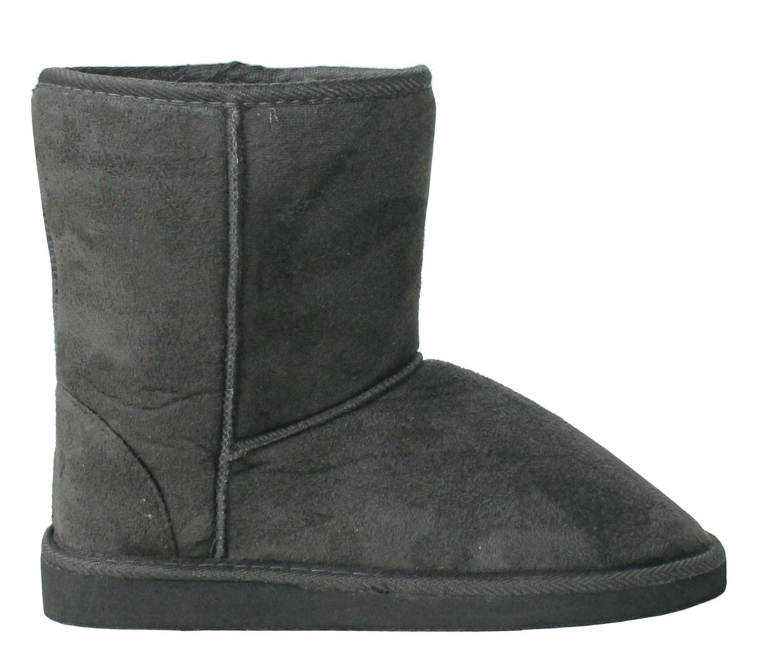 Girls Youth Kids Faux Suede Warm Fur Lined Slip On Mid Calf Snow Winter Grey Boots
