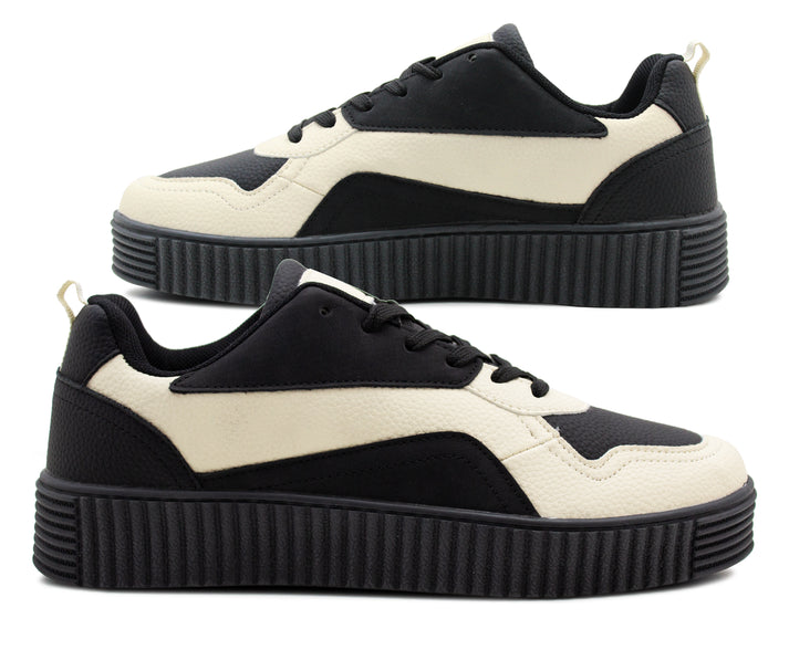 Sleek Faux Leather Upper - These trainers feature a sleek 2 tone faux leather upper with a lace-up closure for a secure and comfortable fit.